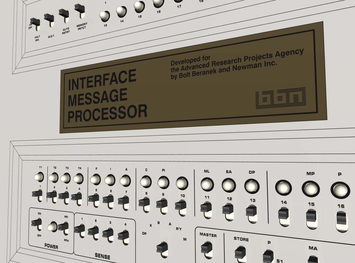 There will be a replica IMP to sit next to PiDP machines. We're figuring out the final parts choices with Kicad (3D render of current prototype). Of course, much as a PiDP is a simulator with hardware front panel, that is what will be done for the replica IMP (IMPi? πMP? It needs a name) too. For the Arpanet-in-a-box, you could take out one of the software-simulated IMPS, and replace it with a physical IMP. More news to come :-)